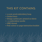 This kit has everything you need, from hoop and fabric to needle and thread. The instruction booklet guides you through the steps to create this design.