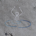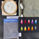 Use the "Skinny Dipping" embroidery revamp kit to add a quirky touch to your clothes or accessories. The design features a skeleton up to its waist in water, with gentle ripples stitched in variegated thread colours.