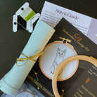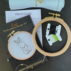 Inside the kit, you'll find a 10.5cm hoop, needle, and all the DMC thread needed to complete the design. The luxurious ice-blue linen fabric has been pre-printed with the cat design, so you can get started straight away.