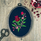 This beautiful piece of hand stitched embroidery pays homage to the tale of Persephone and the pomegranate.