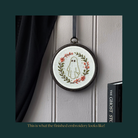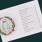 About this Design: A cheerful little ghost tends to flowers in this cute, beginner-friendly embroidery — perfect for summer stitching. With soft sage greens, warm terracotta, golden ochre, and rich brown thread, the design feels like sun-warmed soil and quiet garden days.