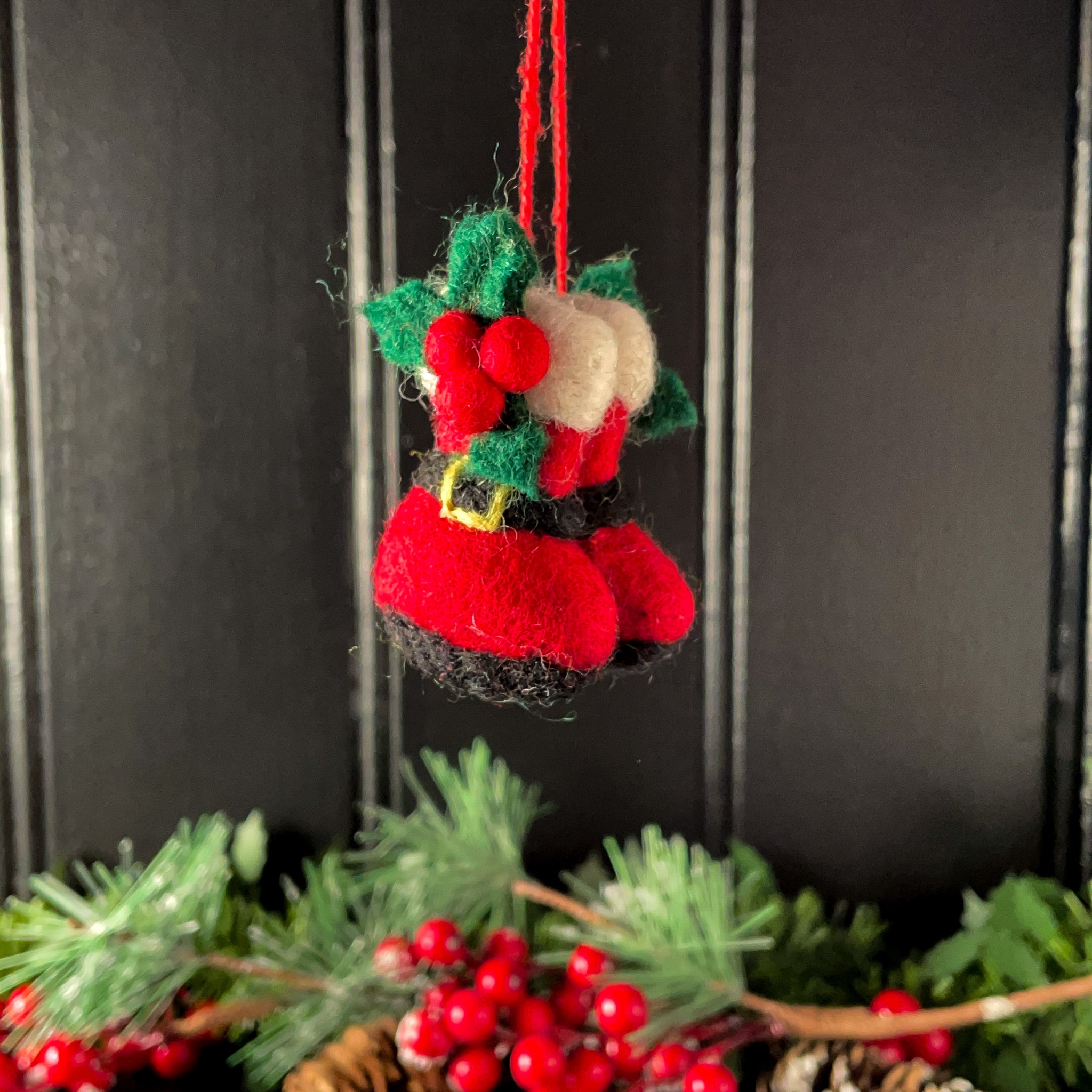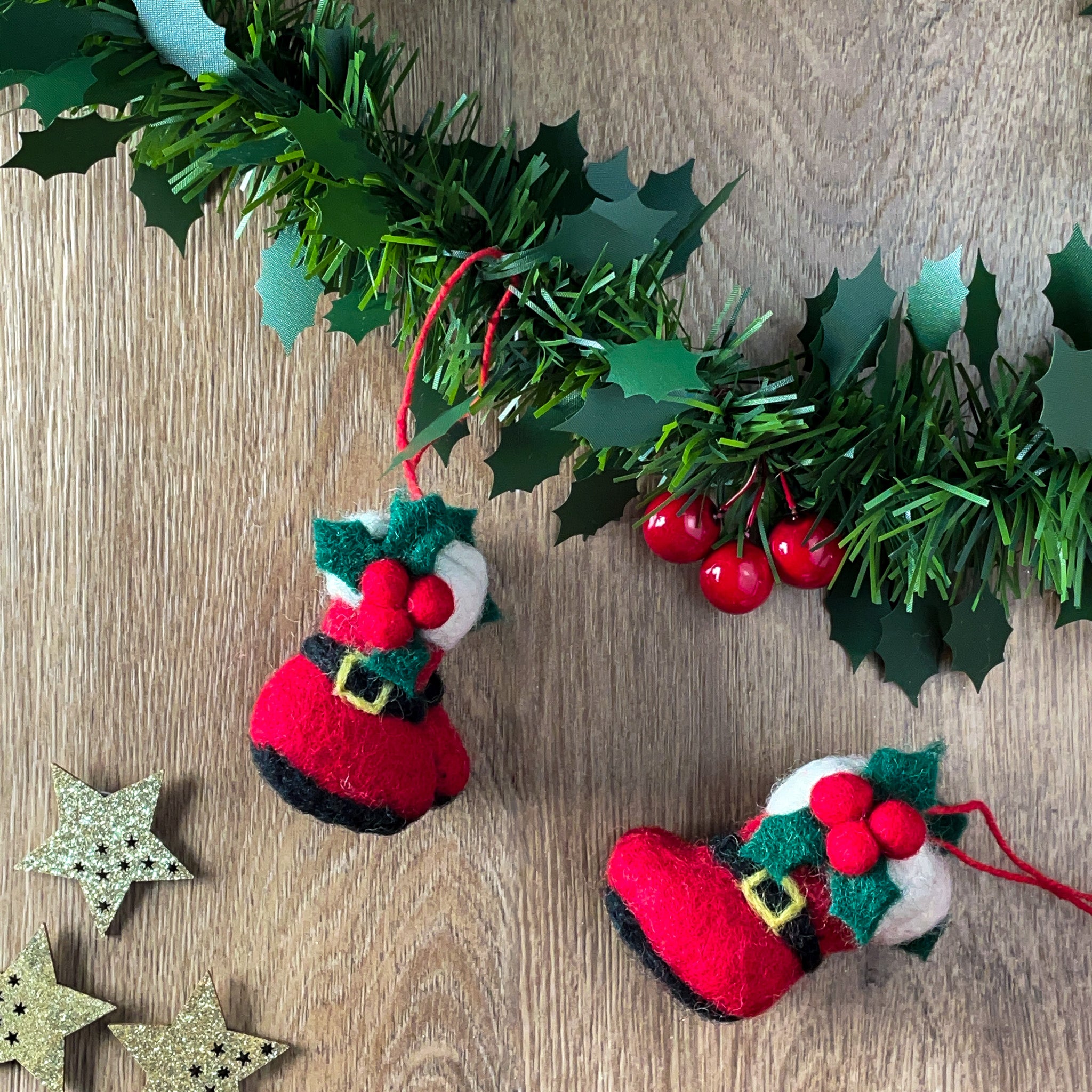 Get ready for Christmas with Santa’s Boots, a cute felt decoration that brings a festive touch to your holiday decor. These mini boots, in traditional Santa style with a touch of felt holly, look ready to carry Santa around the world!