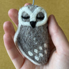 A sleepy little grey owl, made using traditional needle felting techniques, with hand embroidered detailing on its face. This cute little owl is perfect to hang on your Christmas tree or to have as an addition all year round.