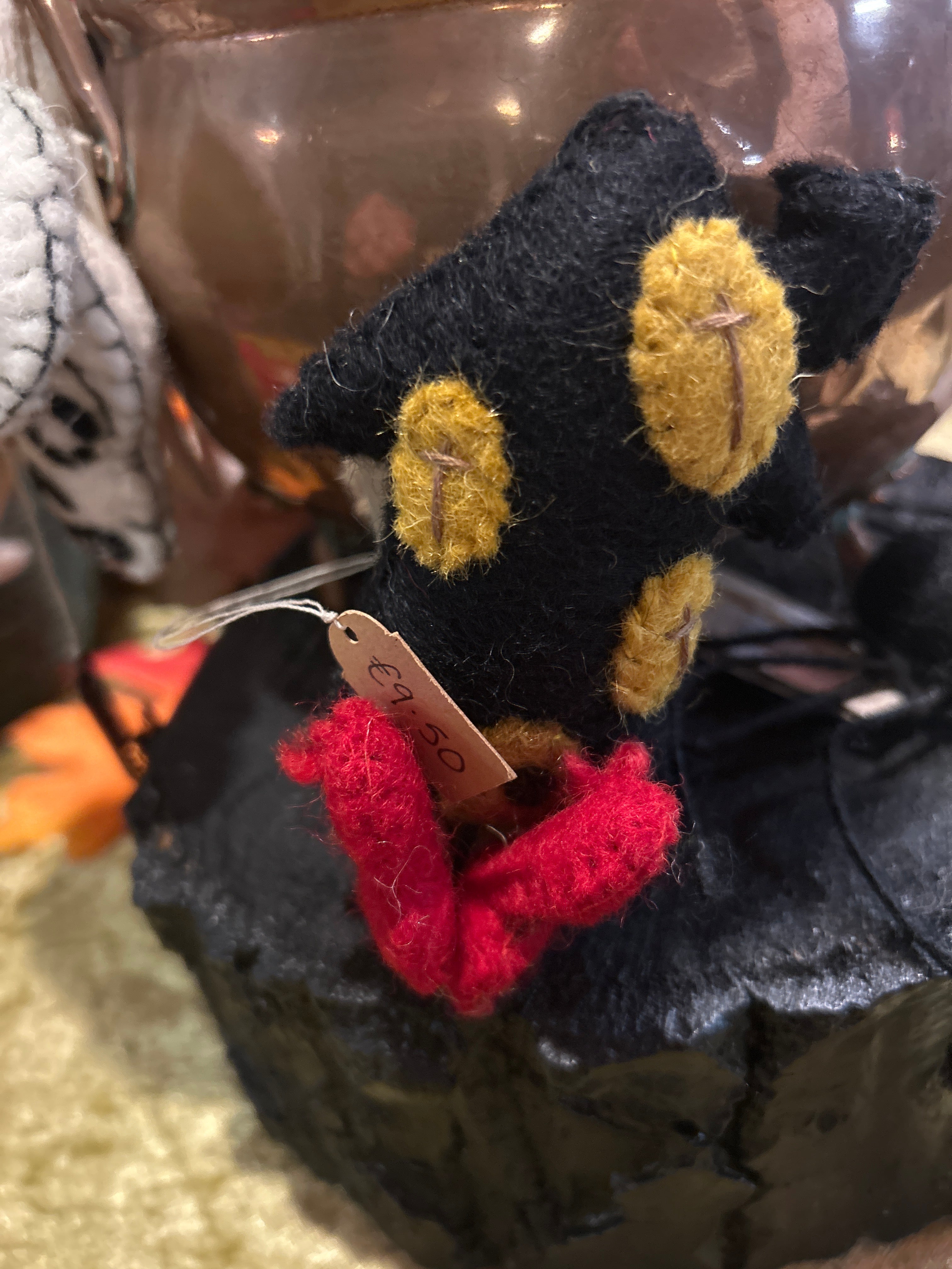 The Witch’s House is a spooky, but cute, hanging decoration inspired by the legendary Baba Yaga! Perched on striped black-and-white legs with bold red boots, this wool house is ready to add something a little different to your regular Halloween display. Cosy and cute, it’s the perfect tribute to the witch’s cottage that wanders through the woods on its own feet.