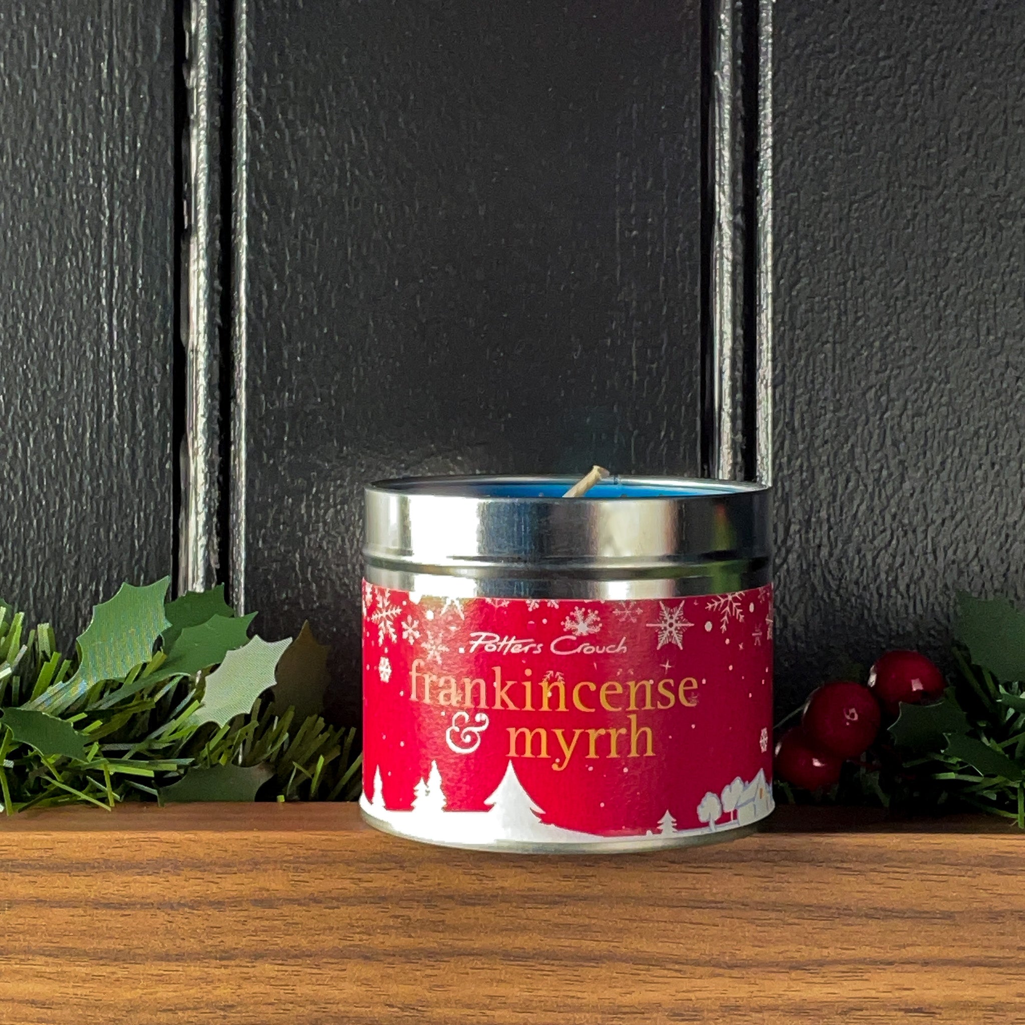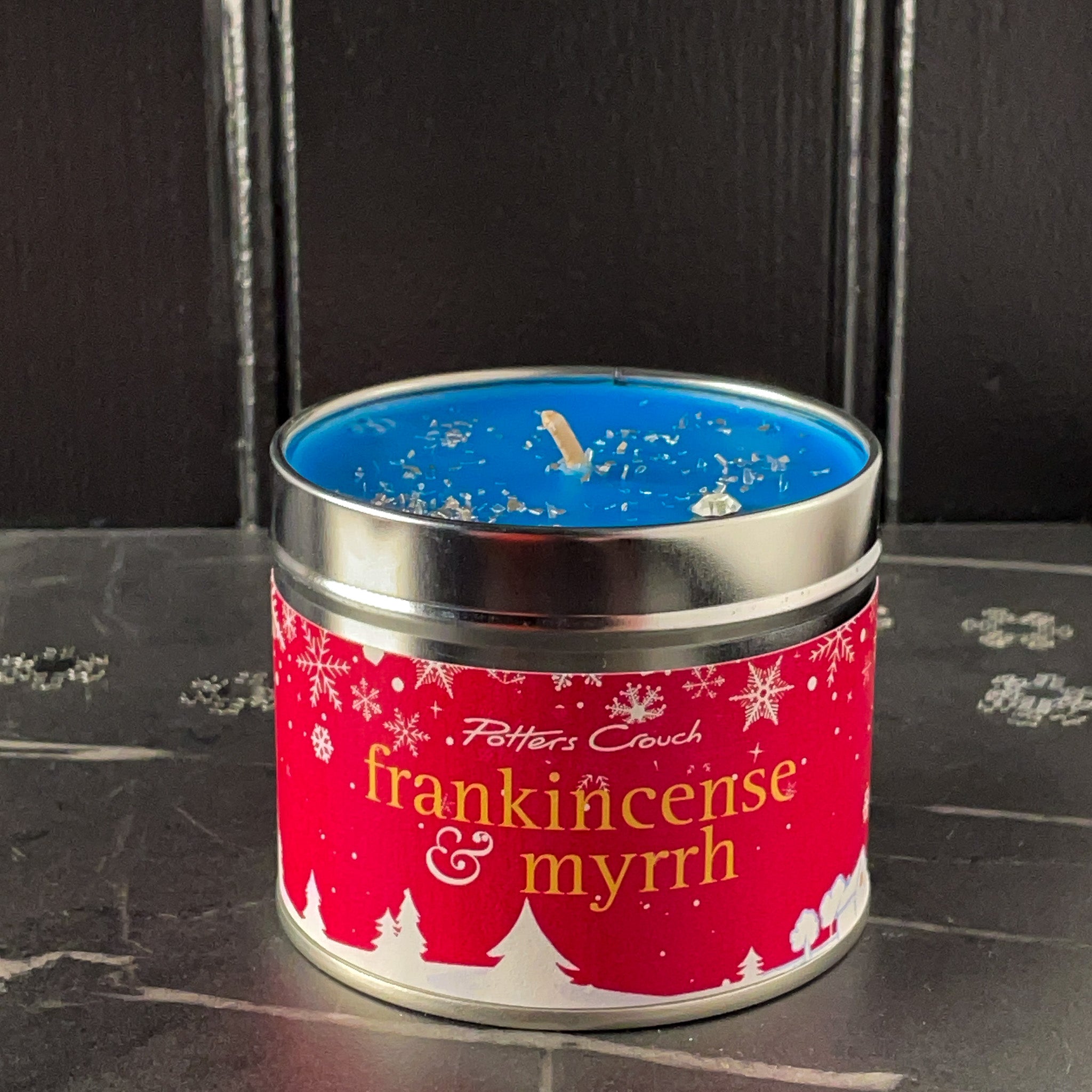 A calm winter evening filled with the inviting scent of Frankincense and Myrrh, wrapped softly in warm musk and amber. Each candle is topped with festive sparkles for a touch of luxury.