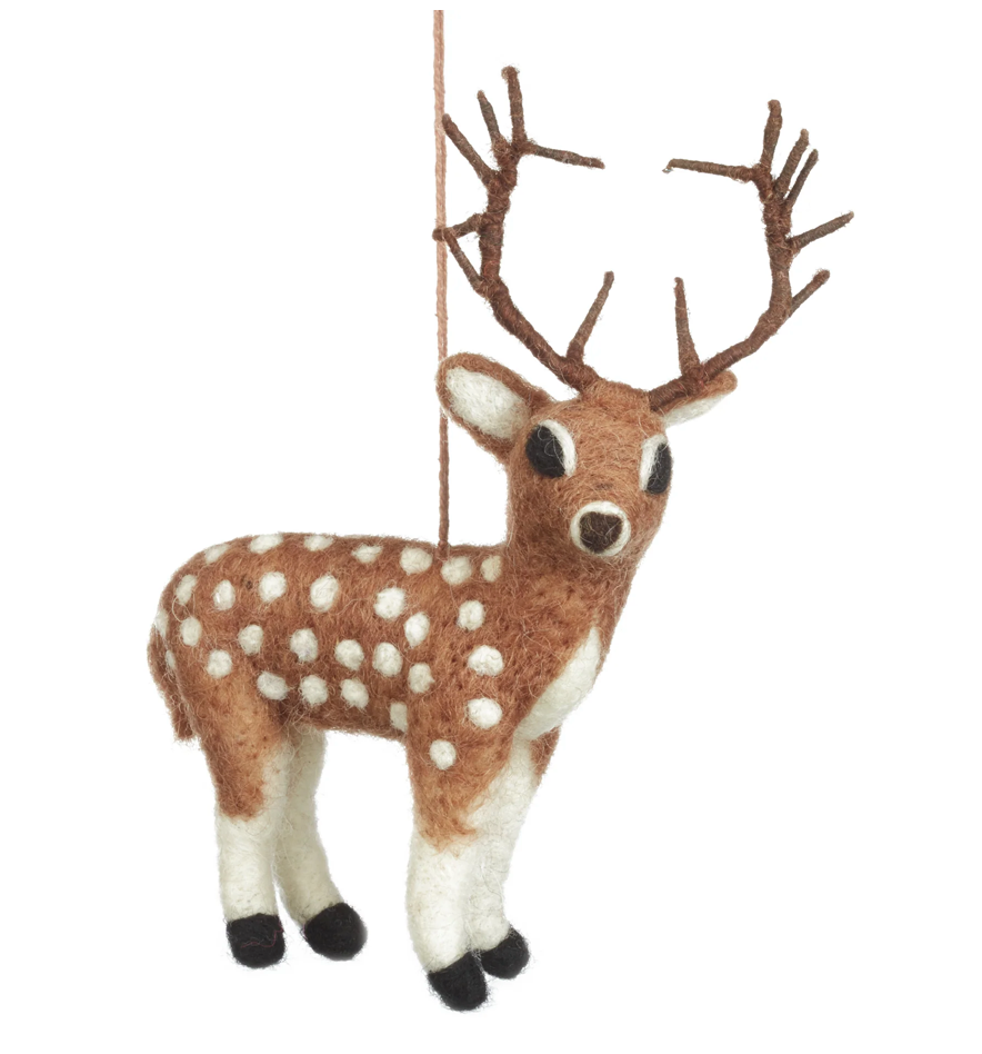 The majestic Stag with brown and white colouring, is king of the forest and perfect for a woodland vibe. Handmade entirely by traditional needle felting techniques and with wire antlers wrapped with string.